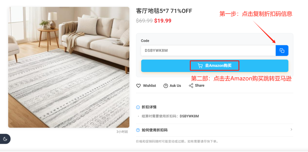 点击复制然后点击去Amazon购买会复制折扣码并并跳转到亚马逊