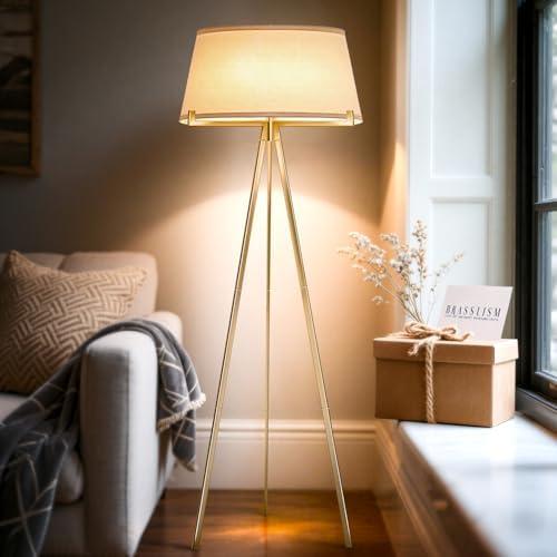 三脚架(亚麻布灯罩现代黄铜落地灯) 50%OFF