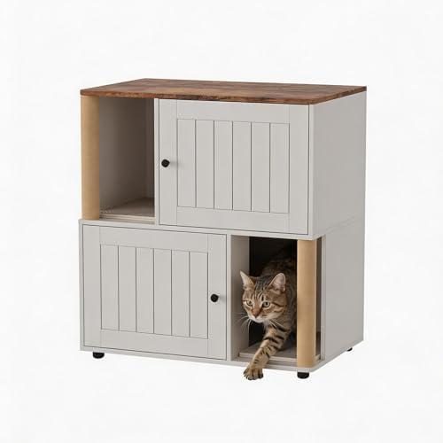 双猫砂盆隐藏柜(现代农舍风/带猫抓柱和垫) 49%OFF