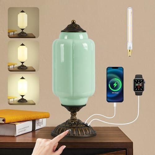 复古(三档调光/触控/带USB充电)牛奶玻璃台灯 70%OFF