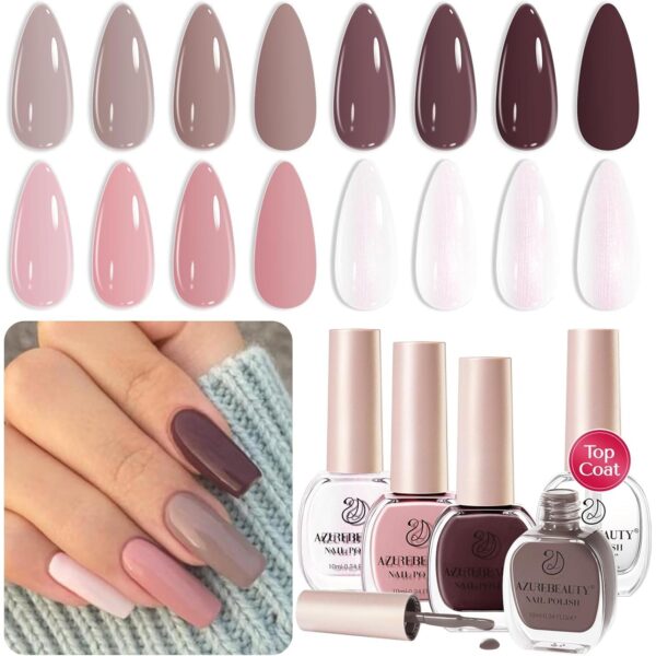 AZUREBEAUTY 指甲油套装 4 色棕色粉色亮片指甲油 -50%