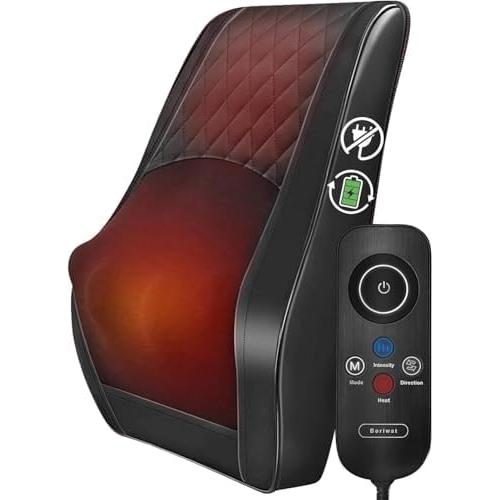博里瓦特指压背部按摩器,用于缓解疼痛 深层按摩型可移动电动颈部背部按摩器,带有热功能 – 可充电按摩器 腰部加热按摩器,适用于办公室/家庭/汽车 – 男士女士礼品 50%OFF