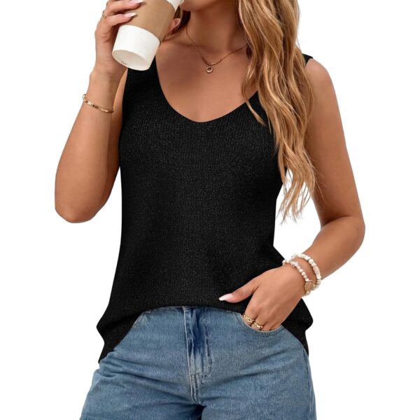 BTFBM 毛衣背心 女款 2026 春夏无袖 V 领闪亮针织基础宽松背心度假装(黑色,小码)-72%