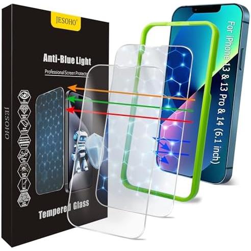 无色蓝光屏幕保护膜,适用于 iPhone 13/13 Pro/14/16e/17e(6.1 英寸)的钢化玻璃屏幕 50%OFF
