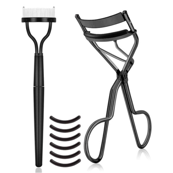 睫毛夹套装 金属睫毛卷发器,含睫毛分离器梳工具和6个替换垫(黑色) -50%