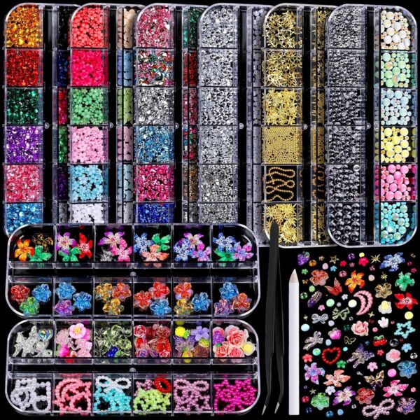 FANDAMEI指甲吊饰、8盒美甲饰品和宝石-50%