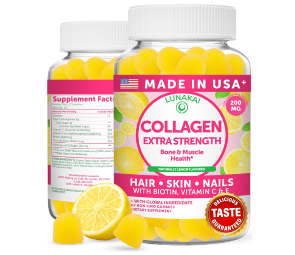 Lunakai USA胶原蛋白肽软糖——200毫克非转基因抗衰老配方 55%OFF