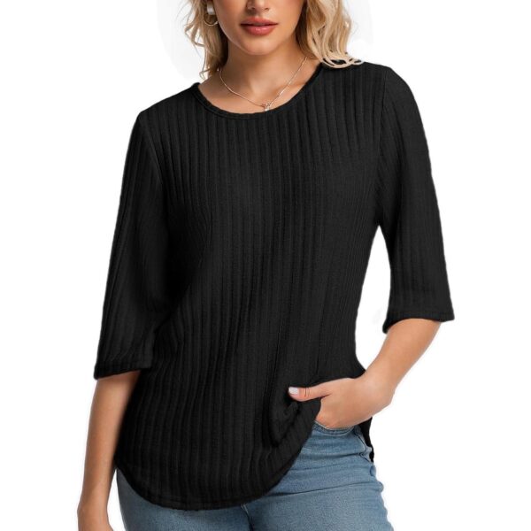 MAGICATELIER 女士秋季毛衣 3/4袖宽松束腰上衣圆领 休闲休闲 2026 黑色-73%
