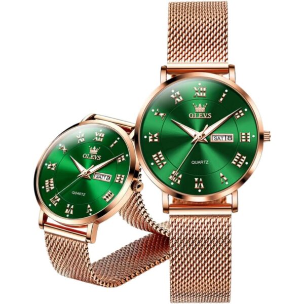 OLEVS 绿色女款表 亮面绿色表盘 金色网状表带-50%