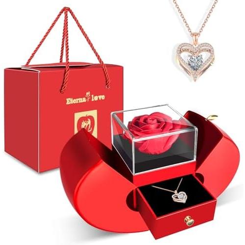 红玫瑰配心形项链 55%OFF