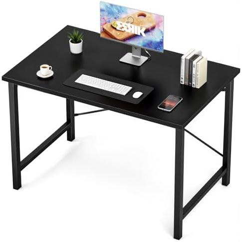小型电脑办公桌 40 英寸 学生学习、写作、工作用桌 有金属框架 木质桌面 现代简约风格 家居卧室用电脑桌 – 黑色 25%OFF