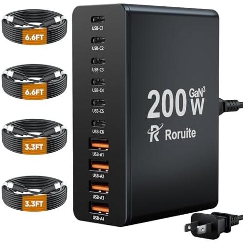 10 口 USB C 充电站,配备 4 根数据线 43%OFF