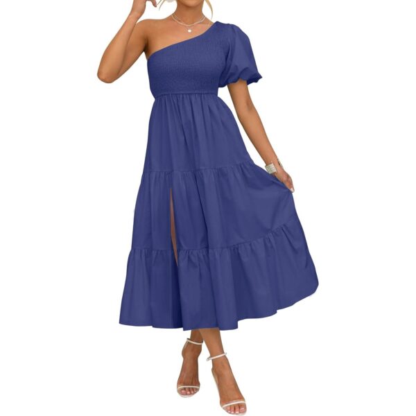 ZESICA 女装波西米亚夏季单肩短袖,侧开荷叶边摆动中裙皇家蓝 L -64%